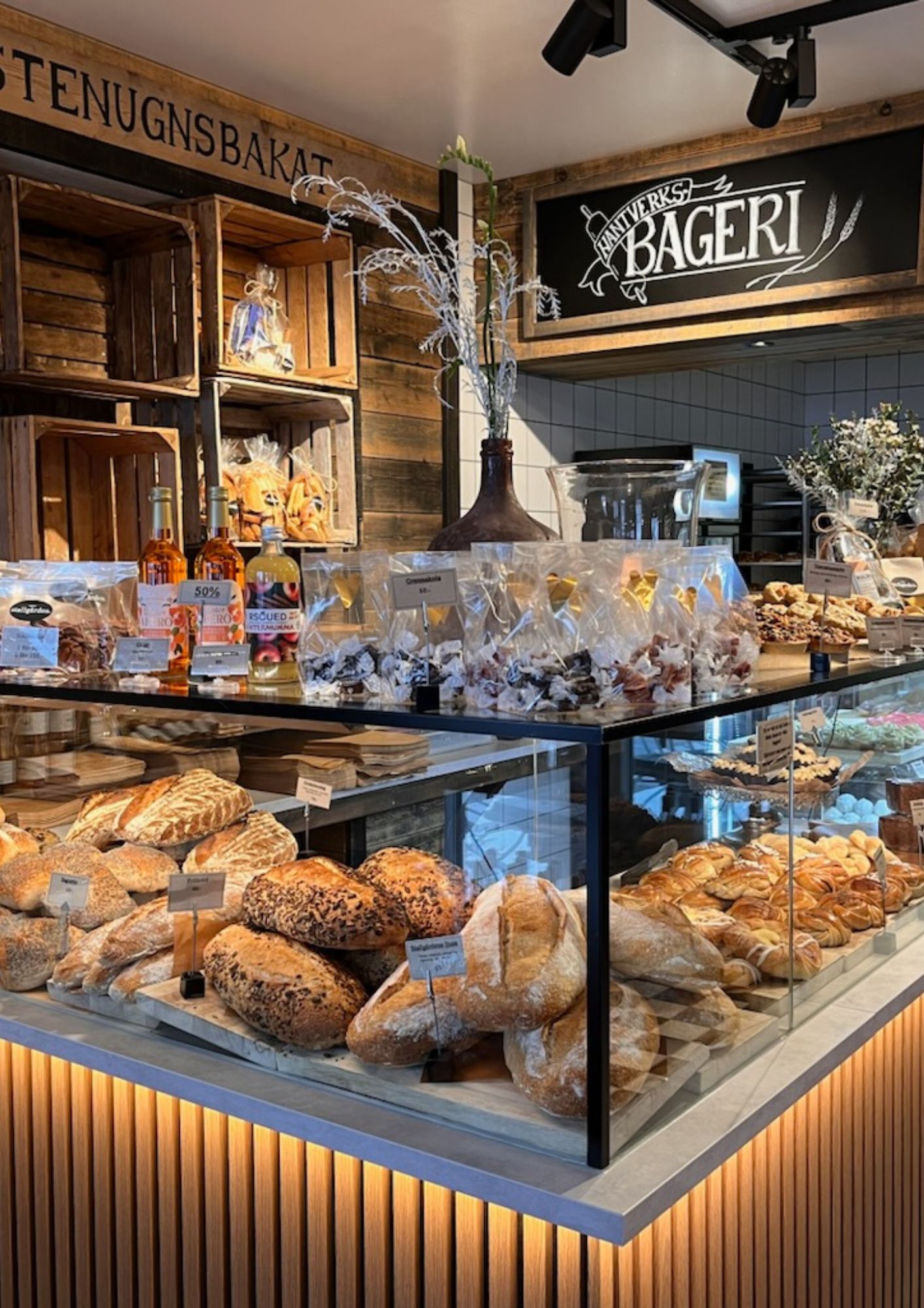 Det doftar nybakat från bageriet, min närmsta granne. Utanför oss kan ni sitta ner med en fika då vädret tillåter. Här finns även delikatesser med ett bra sortiment av ostar.