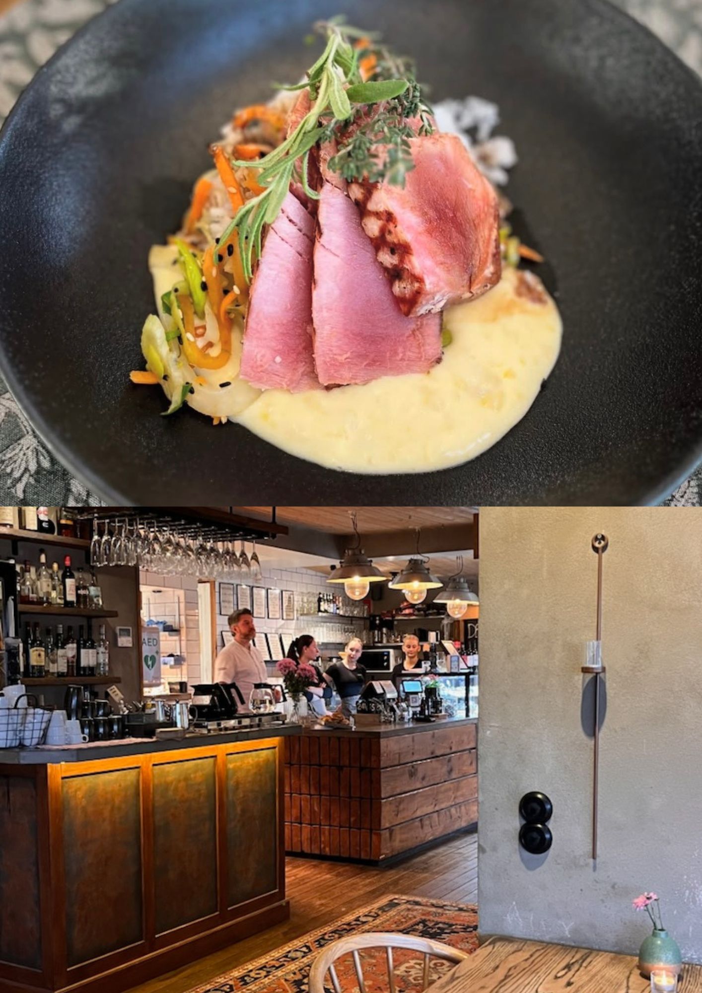 Uppe i restaurangen serveras lunch av toppklass och kaféet har delikata bullar och bakverk från bageriet. Miljön har hög mysfaktor! ........................